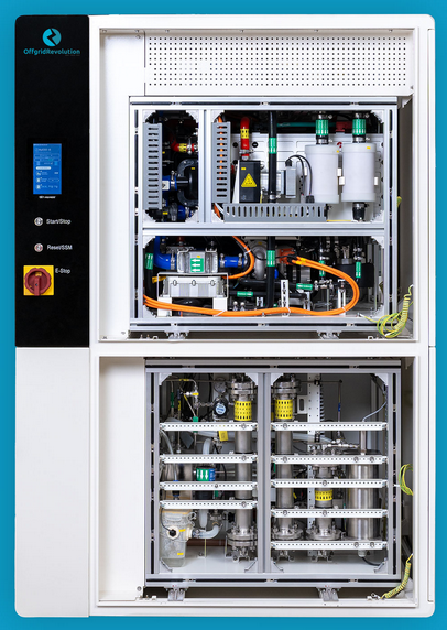 Das Wasserstoff-Stromspeichersystem von Offgrid Revolution ist der ideale Partner für eine ganzjährige grüne Energieversorgung. Das Wasserstoffproduktionsmodul verwendet überschüssigen Solarstrom zur Erzeugung von Wasserstoff, der in Hochdruckzylindern gespeichert wird. Das Batteriemodul sorgt dafür, dass der tägliche Strombedarf sowie der Lade- und Entladezyklus einmal täglich gedeckt werden. Wenn die Solaranlage keinen Strom mehr produziert, nutzt das Brennstoffzellenmodul im HySol den im Sommer gespeicherten Wasserstoff, um Strom und Wärme für das Zuhause zu erzeugen.
